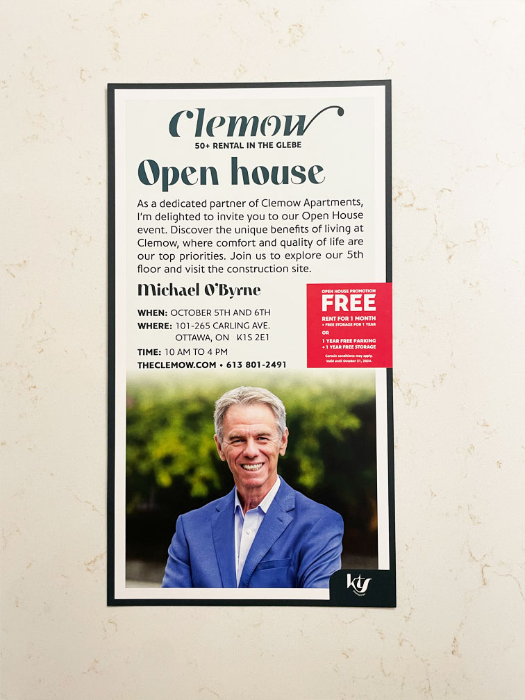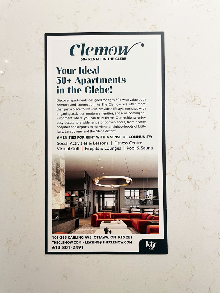 The Clemow has been one of our most rewarding projects, taking a bold concept for 50+ living and bringing it to life in Ottawa’s prestigious Glebe District. The full marketing effort spanned from pre-construction through lease-up, with a brand identity built to resonate with the target demographic from day one.